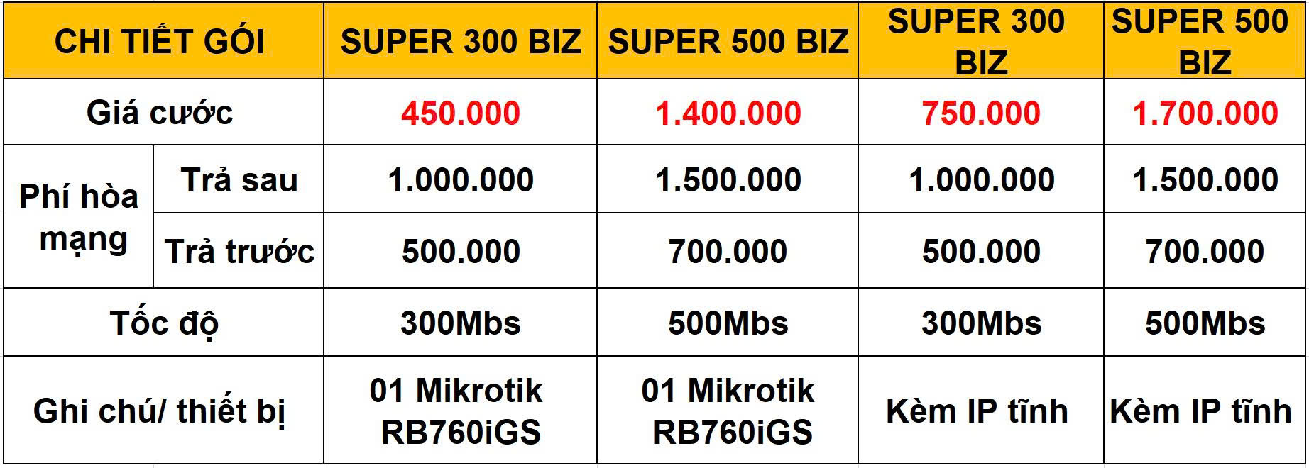 IV.BẢNG GIÁ CÁP QUANG DOANH NGHIỆP, QUÁN GAME, COFFE, NHÀ HÀNG, LIVE STREAM,…