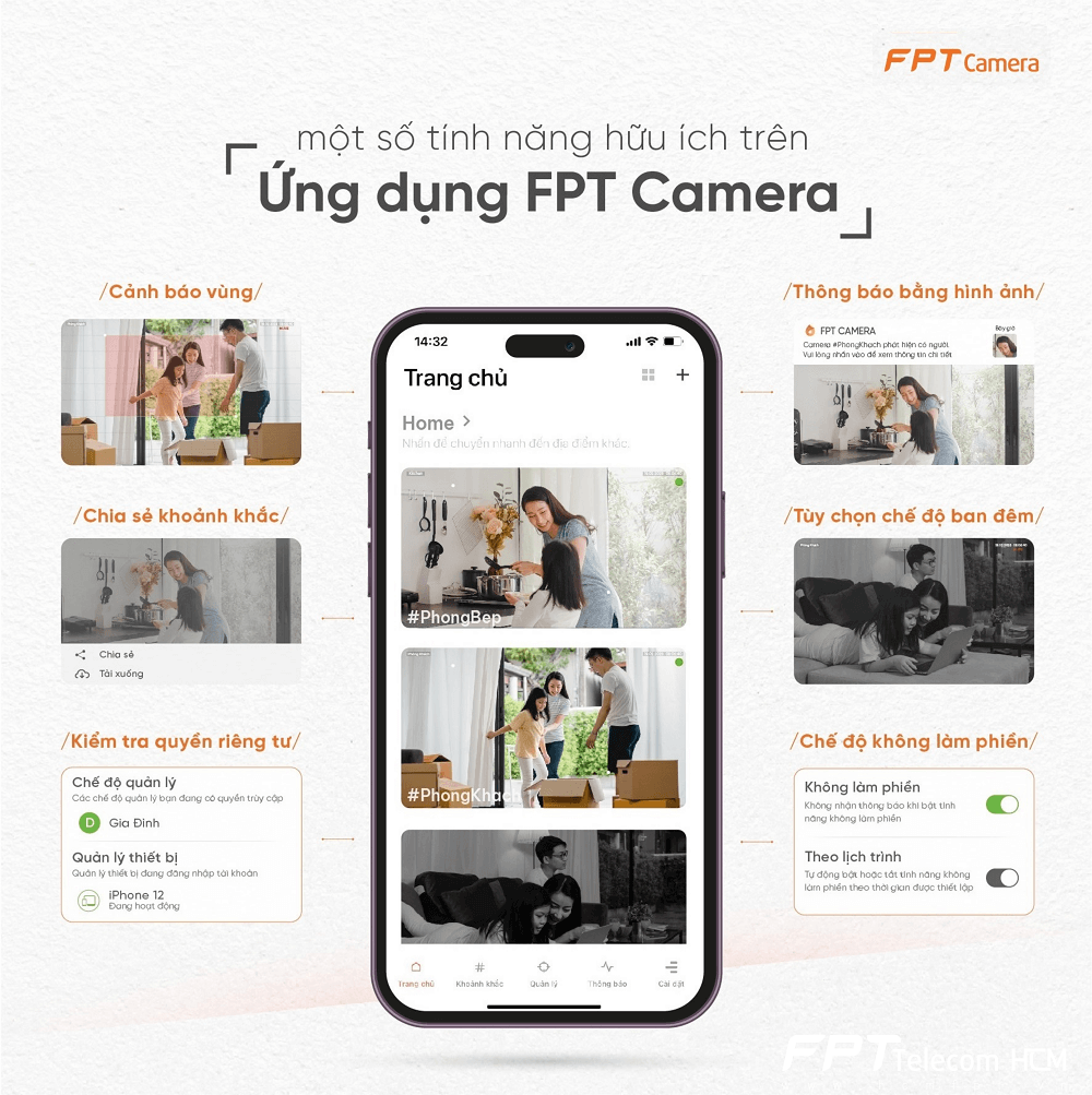 - AI: phát hiện có người, cảnh báo, loa hú và qua app FPT Camera